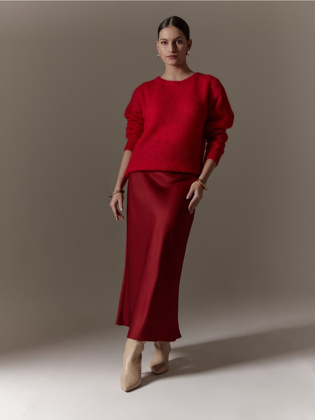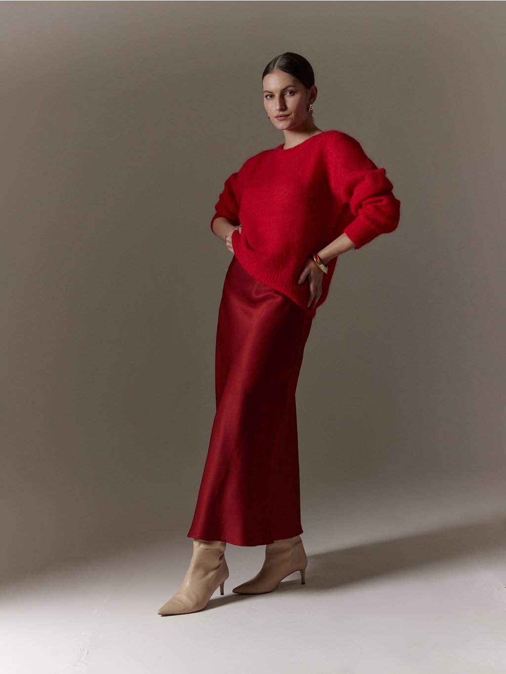 HOW TO PROCEED WHEN HAND WASHING? Always use work tools intended for silk or wool. It is best to wash by hand in a sink in lukewarm water (25-30 °C), mix a small amount of detergent, immerse the garment and leave it soaked for about 15-30 minutes. Then gently rub your hands together - don't wait, don't scrub. Replace the water with clean (but the same temperature) and rinse carefully. Spread the washed piece on a dry towel and roll it up, the excess water will soak into the towel. Finish spread out on the desktop. Iron before it is completely dry, slightly damp silk irons much better. Do not use fabric softener. I