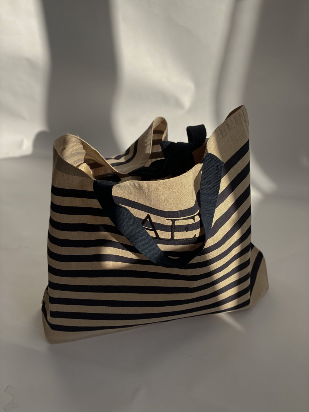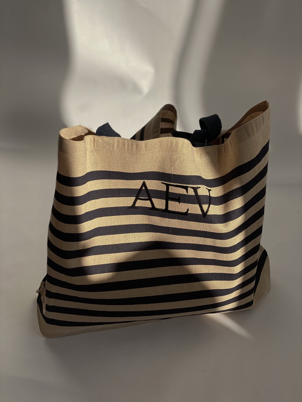 PRUHOVANÁ VELKÁ TAŠKA AMIRA S MONOGRAMEM.