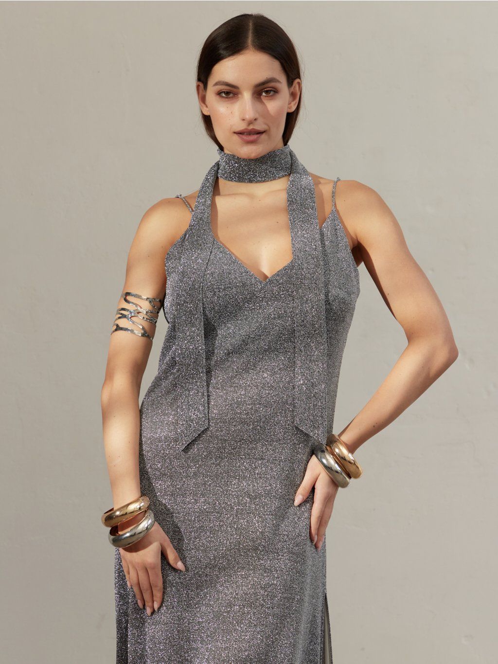 - Vyrobeno ze šikmo střižené látky, jehož unikátní vlastností je, že respektuje ženskou siluetu, neobepíná a s tělem krásné splývá, díky tomu nabízí velkou variabilitu pro různé postavy, s rozdílnými mírami, aniž by šaty působily malé či velké, zvolte proto svou běžnou velikost.