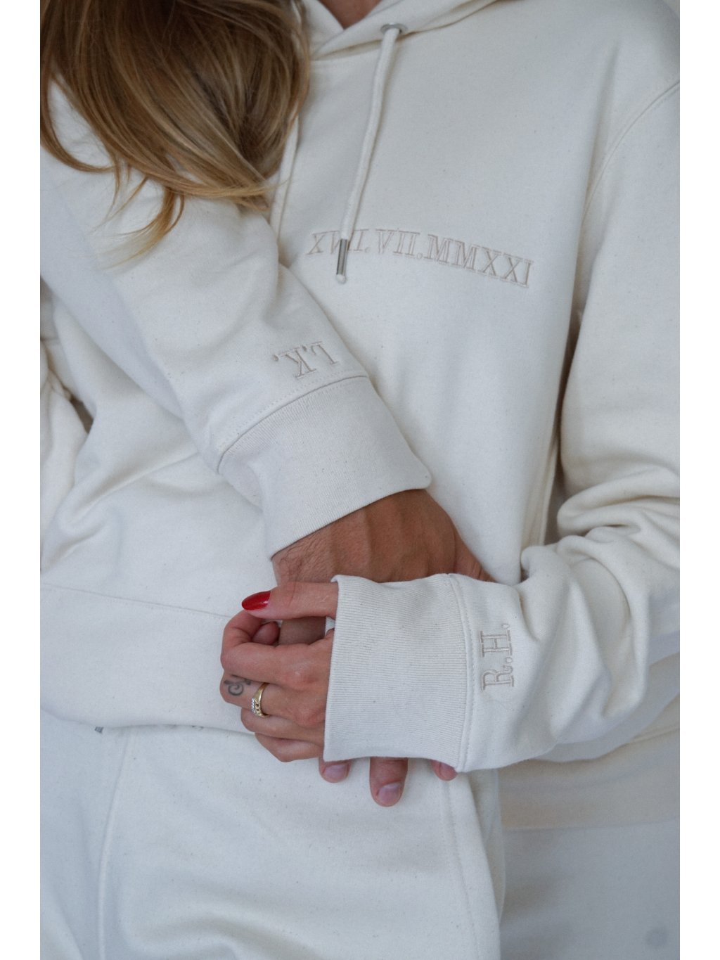 Kolekce se skládá z unisex mikin, teplaků, triček z organické bavlny, na které vám vyšijeme iniciály vás dvou či toho druhého navzájem, společně s datem vašeho seznámení, zasnoubení, svatby, prvního rande, ...či jakékoli jiné, které má speciální význam právě pro vás dva.