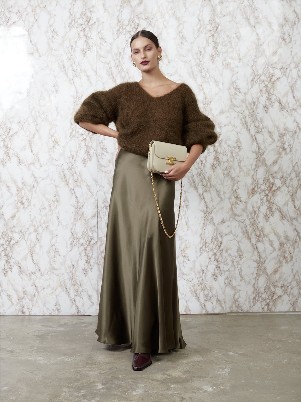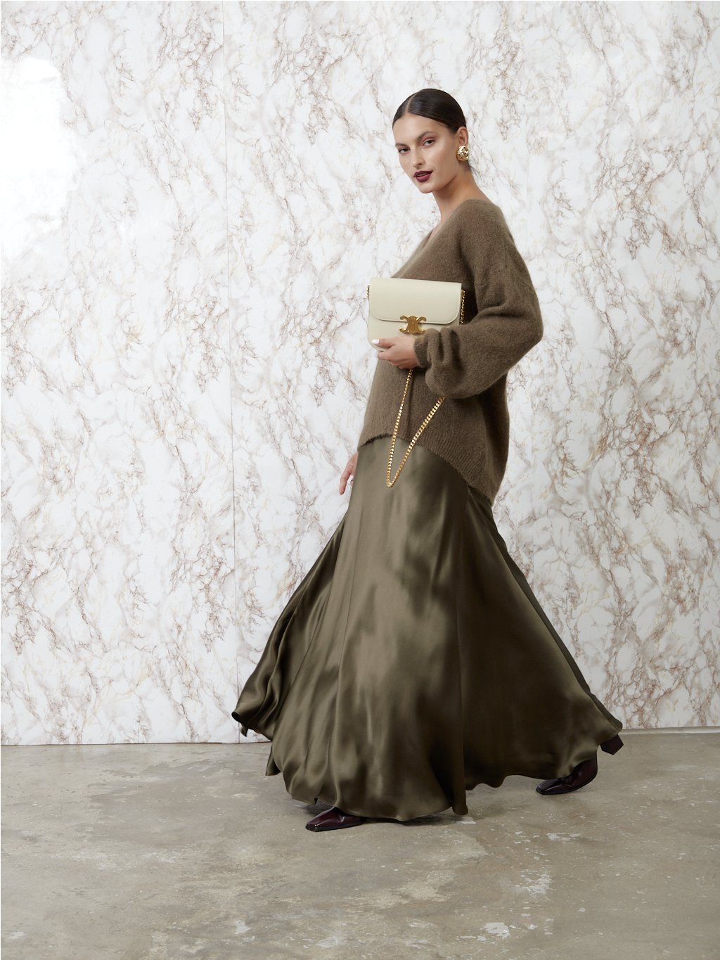 Tailoring of this skirt, such as a slight change of cut, is possible for a 20% surcharge.