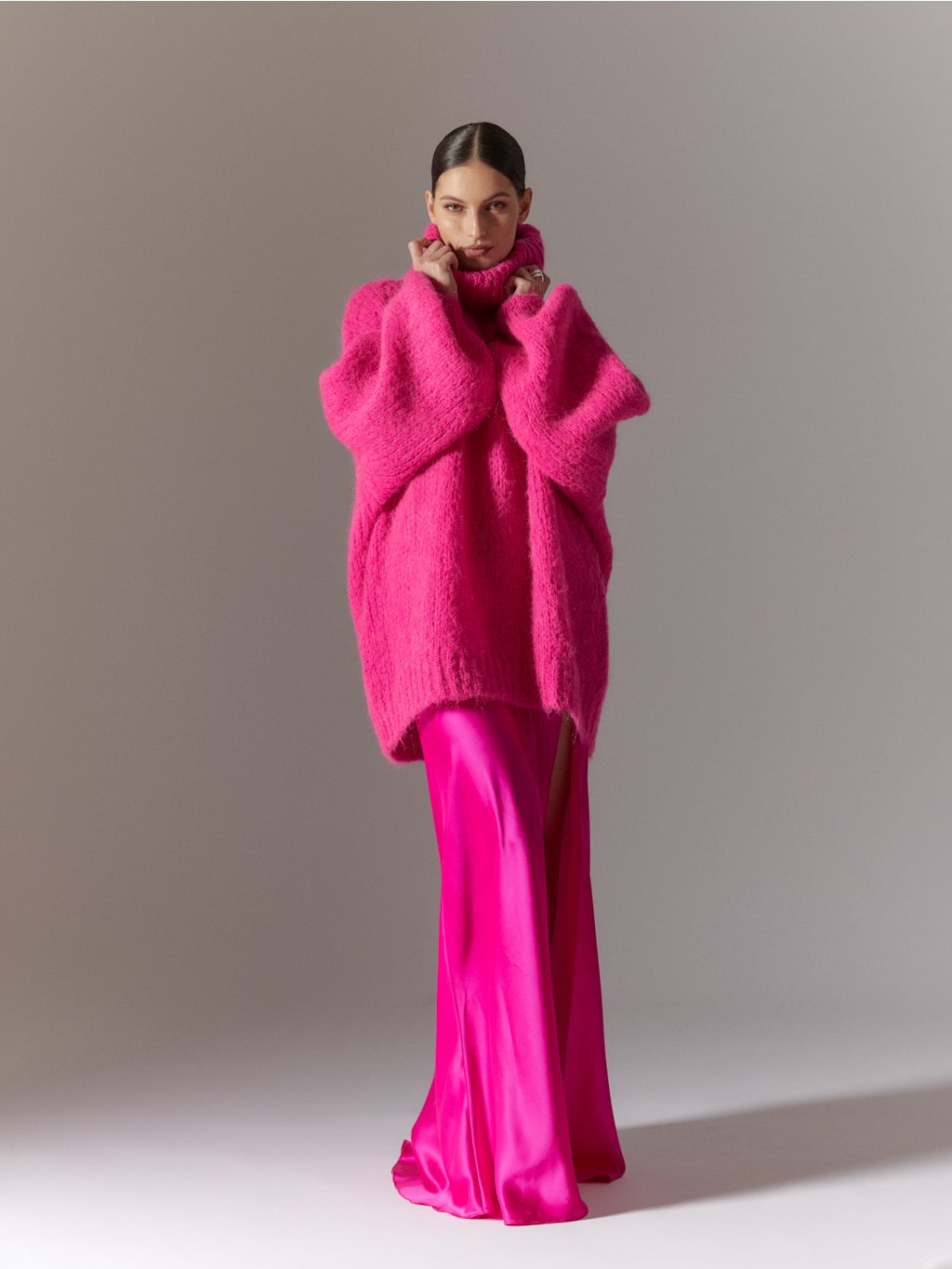 HOW TO PROCEED WHEN HAND WASHING? Always use work tools intended for silk or wool. It is best to wash by hand in a sink in lukewarm water (25-30 °C), mix a small amount of detergent, immerse the garment and leave it soaked for about 15-30 minutes. Then gently rub your hands together - don't wait, don't scrub. Replace the water with clean (but the same temperature) and rinse carefully. Spread the washed piece on a dry towel and roll it up, the excess water will soak into the towel. Finish spread out on the desktop. Iron before it is completely dry, slightly damp silk irons much better. Do not use fabric softener. I