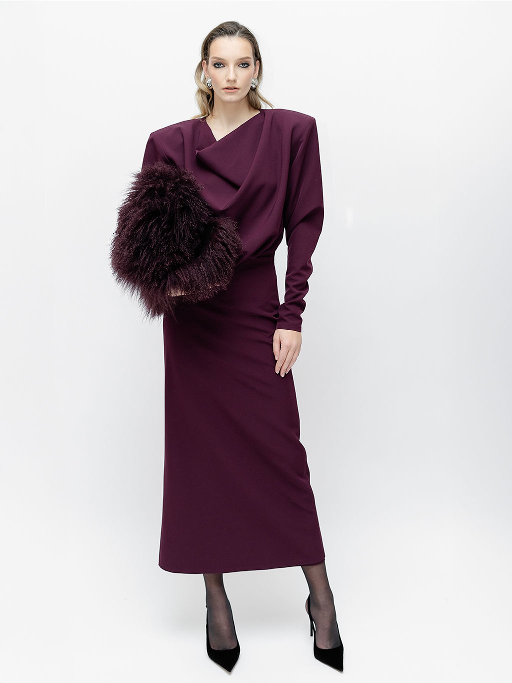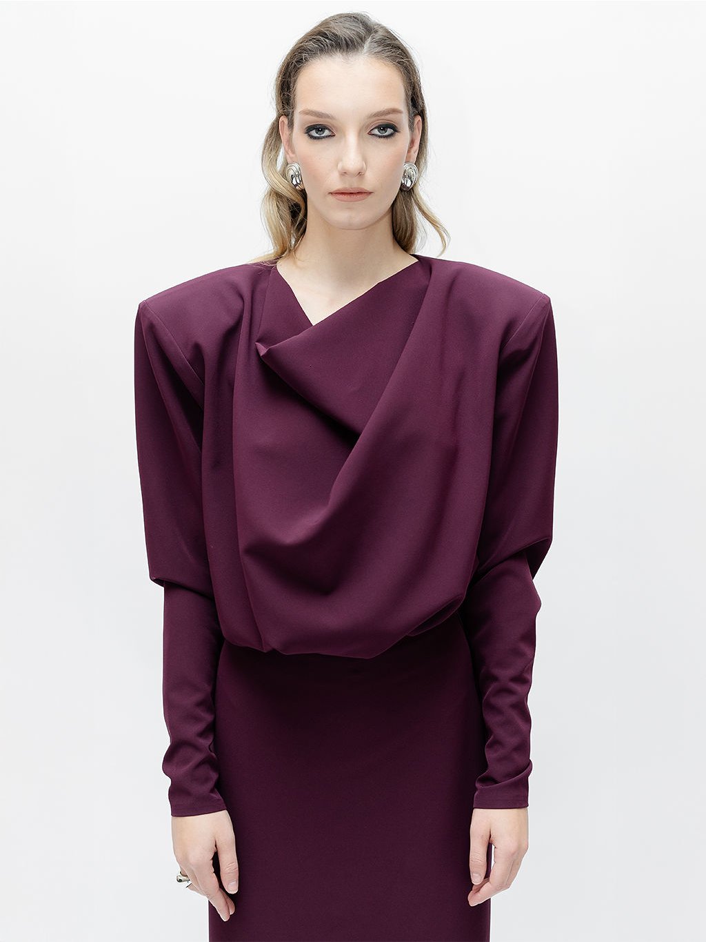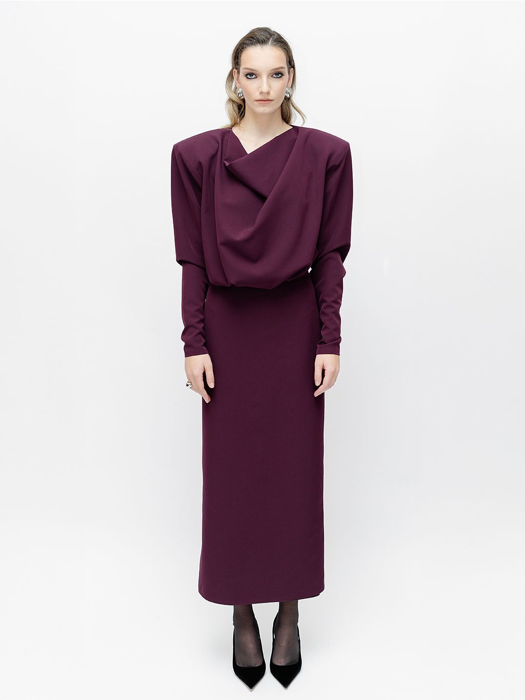 RENTAL DRAPED SHOULDER GOWN – BORDEAUX