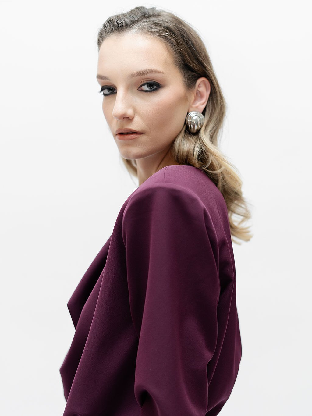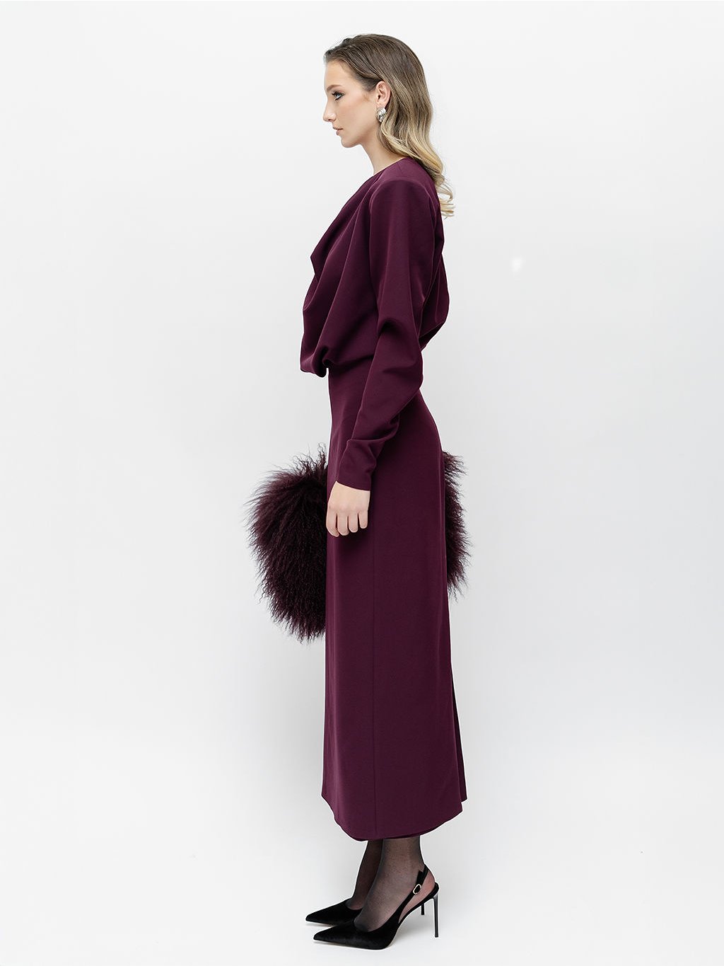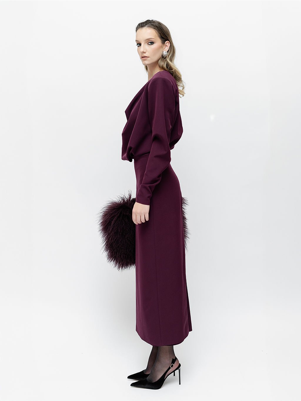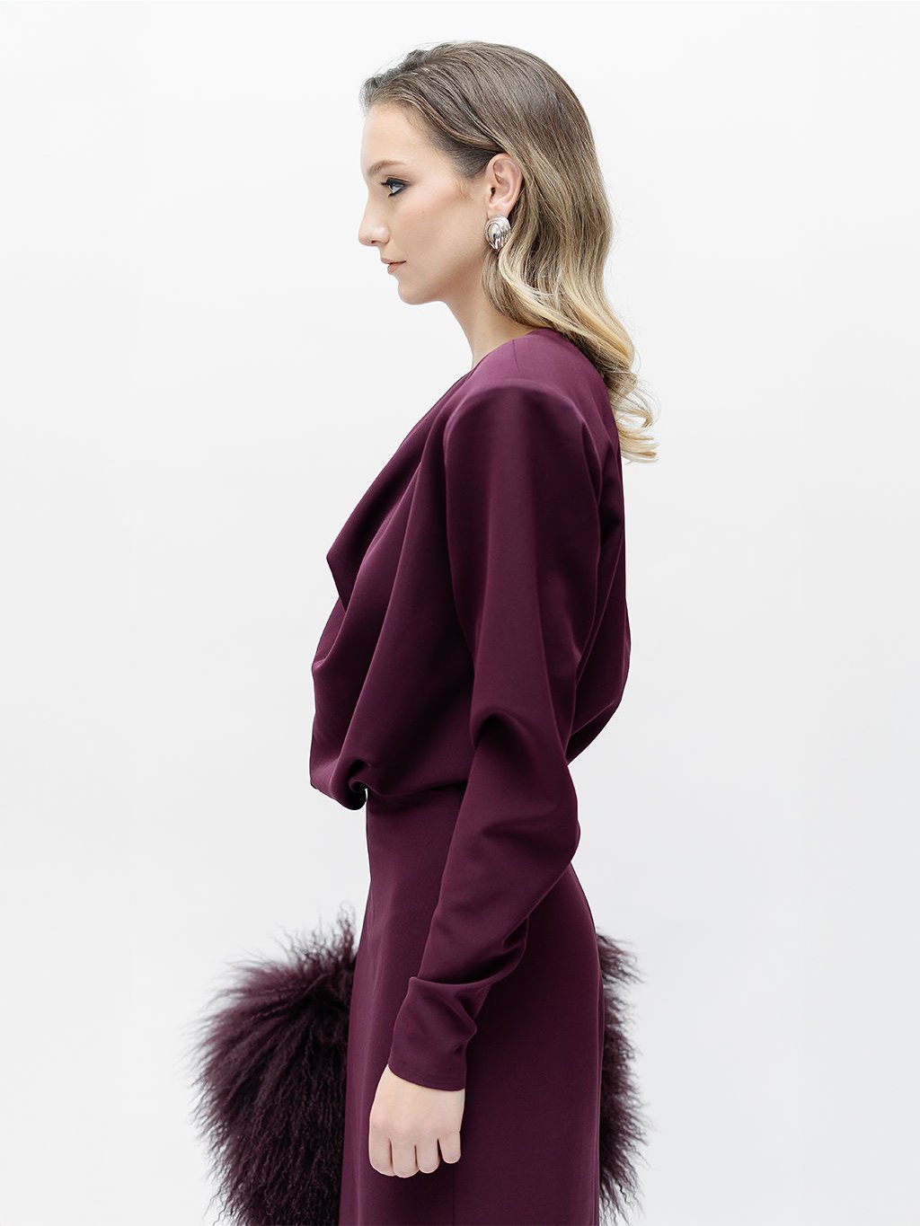 RENTAL DRAPED SHOULDER GOWN – BORDEAUX