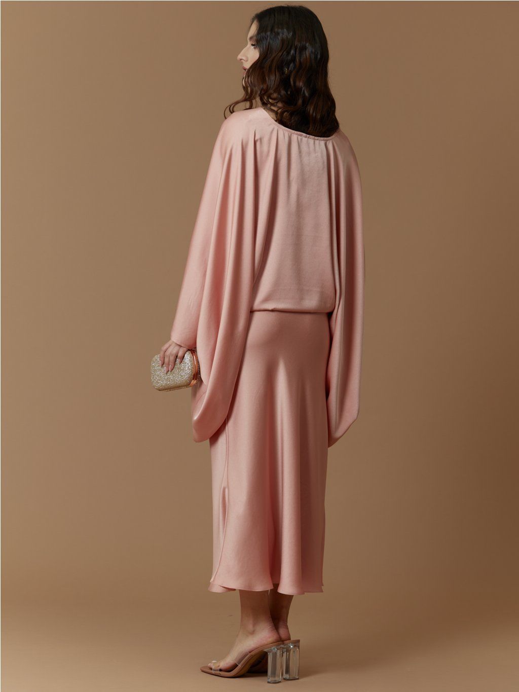 - Vyrobeno ze šikmo střiženého hedvábného saténu, jehož unikátní vlastností je, že respektuje ženskou siluetu, neobepíná a s tělem krásné splývá, díky tomu nabízí velkou variabilitu pro různé postavy, s rozdílnými mírami, aniž by šaty působily malé či velké, zvolte proto svou běžnou velikost.