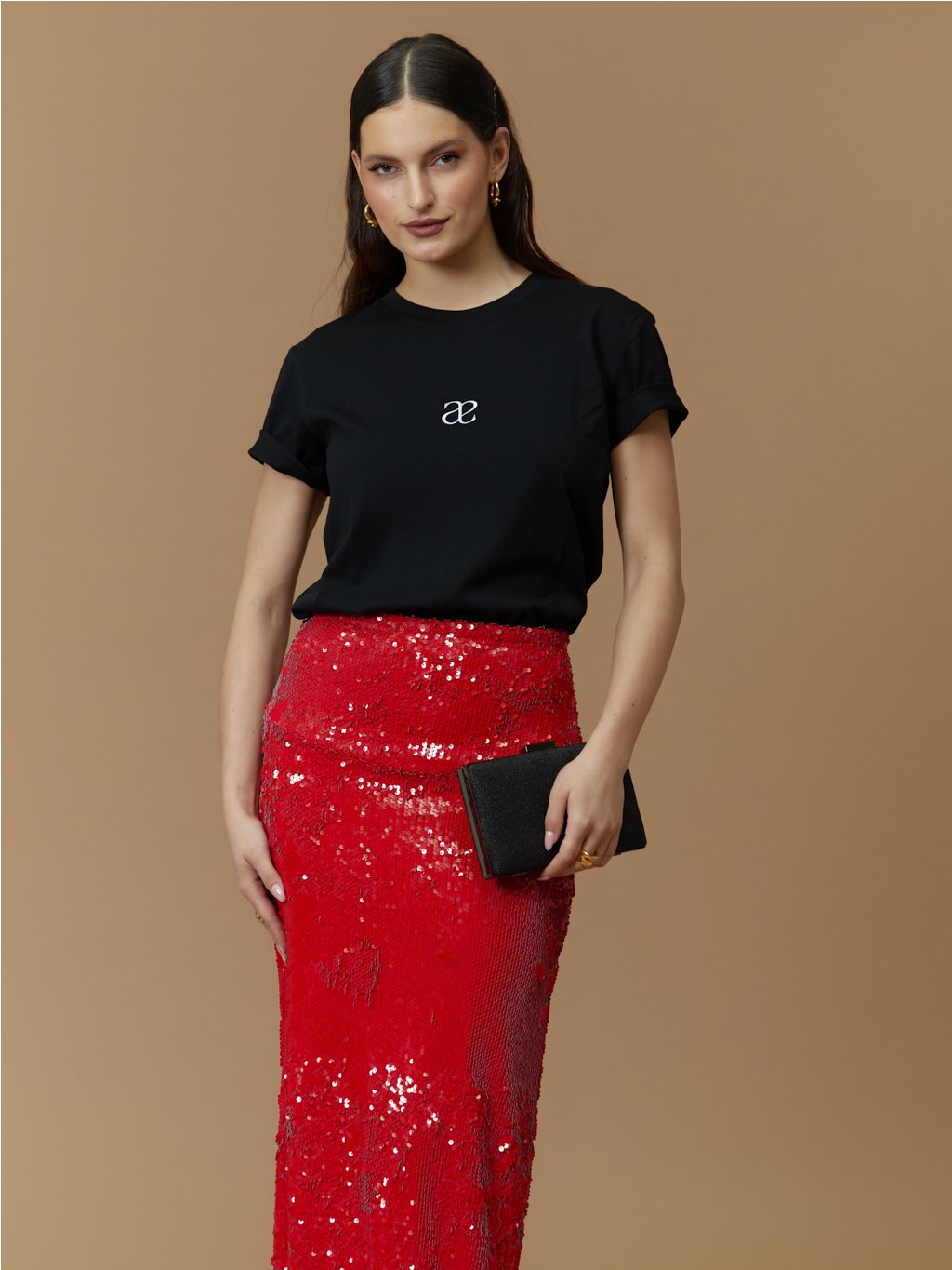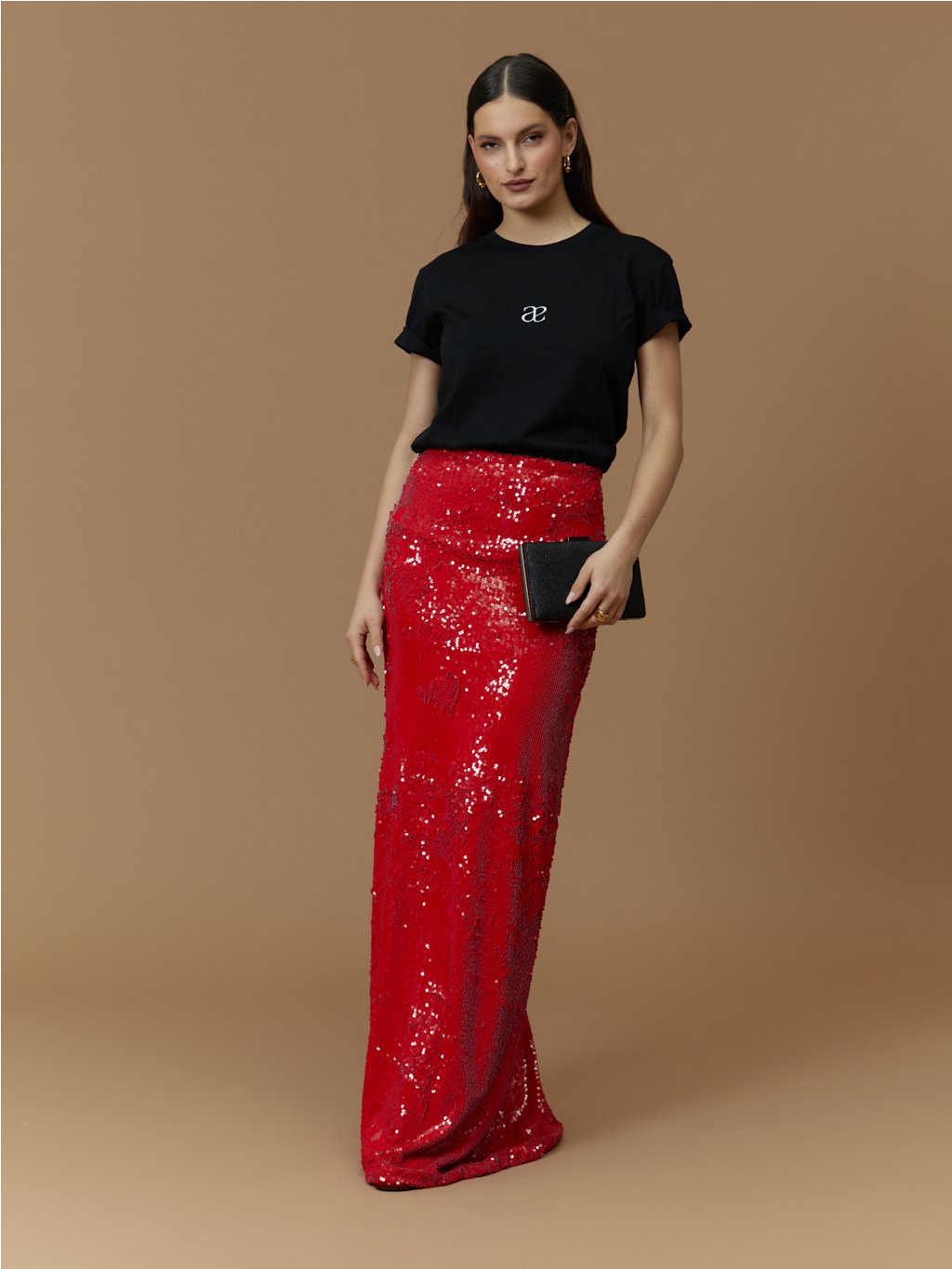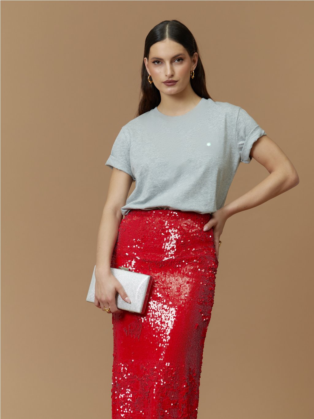 Tailoring of this skirt, such as a slight change of cut, is possible for a 20% surcharge.