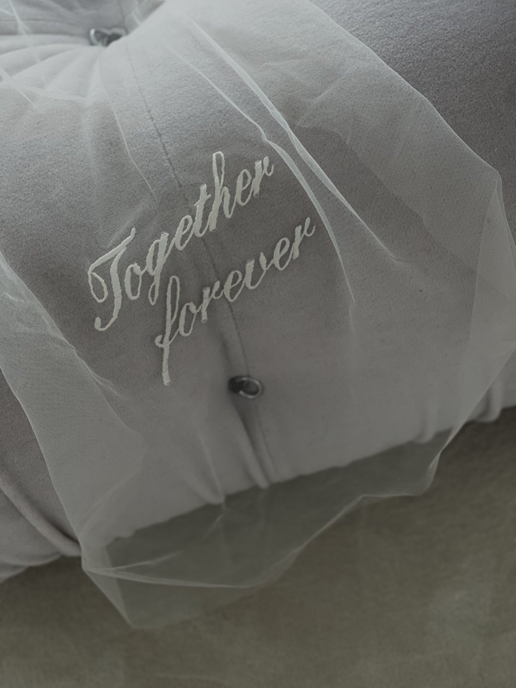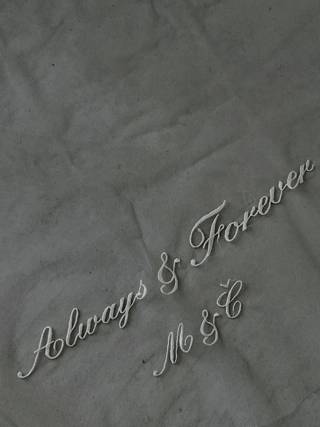 Zvolte variantu YOU WILL FOREVER MY ALWAYS. DATUM + SRDCE EVER THINE . EVER MINE . EVER OURS INICIÁLY+DATUM SVATBY JMÉNA+ DATUM SVATBY ALWAYS & FOREVER TOGETHER & FOREVER OKRASNÉ INICIÁLY (obrázek VLN) ALWAYS INICIÁLY JMÉNA NAVĚKY FOREVER VLASTNÍ CITÁTY A SLOGANY (max. 15 výšivek)