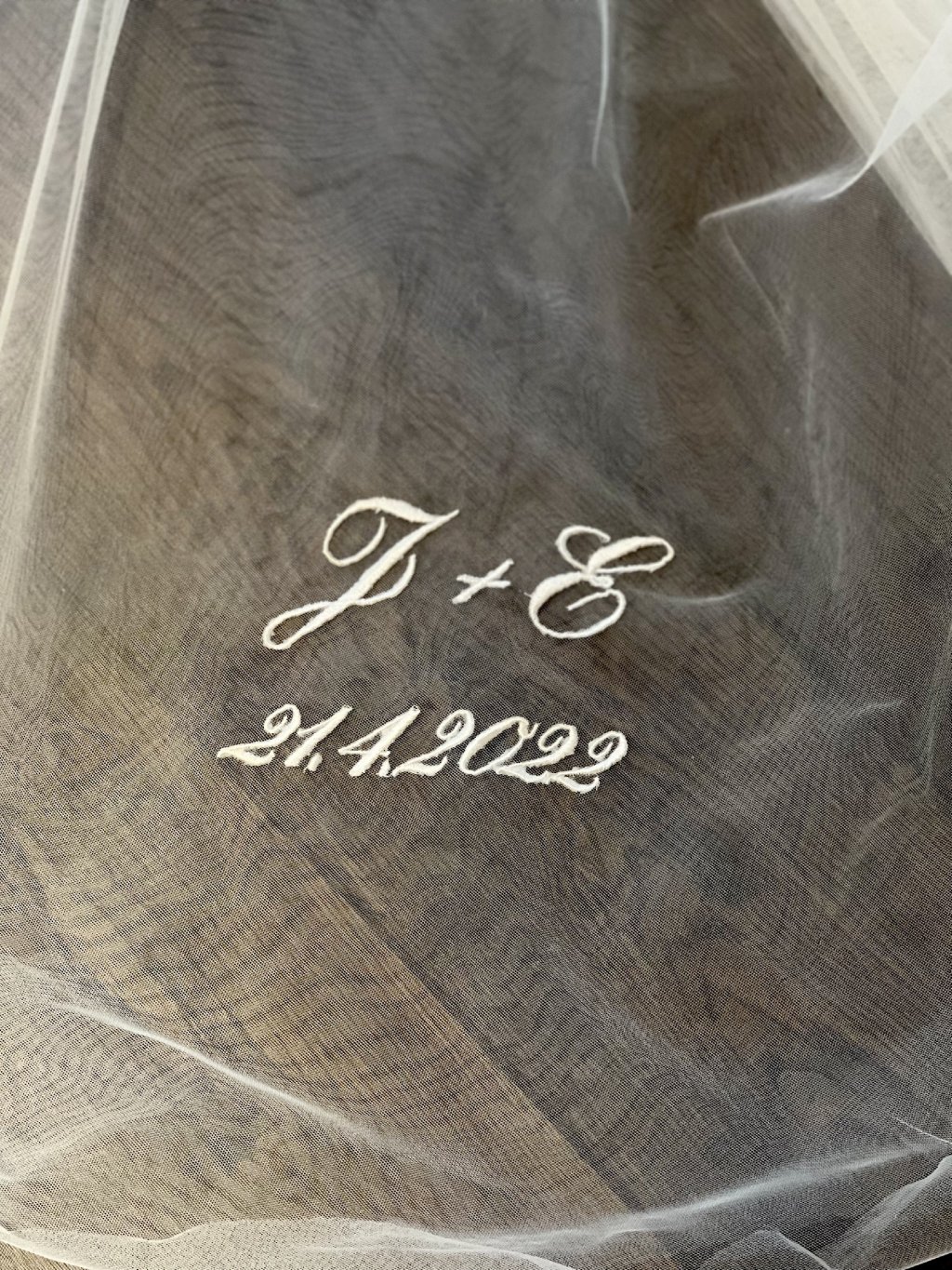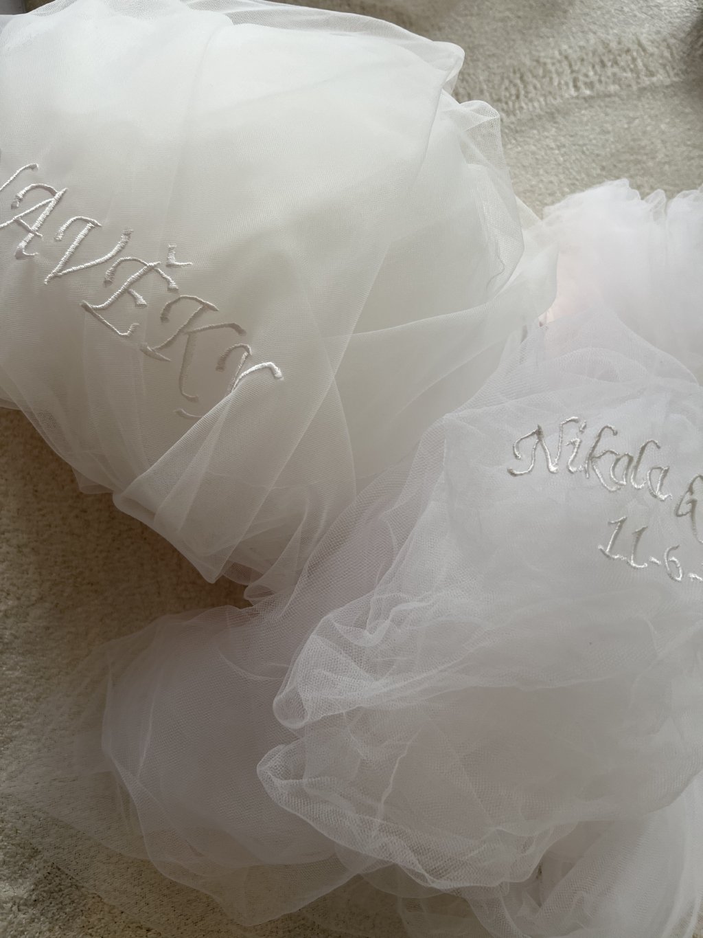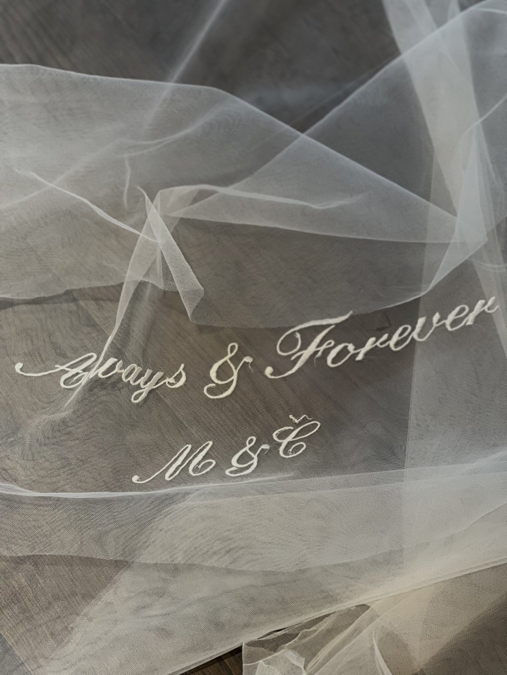 Hledáte něco originálního pro váš velký den? Náš vyšívaný maxi závoj bude dominantou vašeho dne D. Vyberte si iniciály, jméno, datum svatby nebo jiný výjimečný okamžik, který vám vyšijeme na závoj.