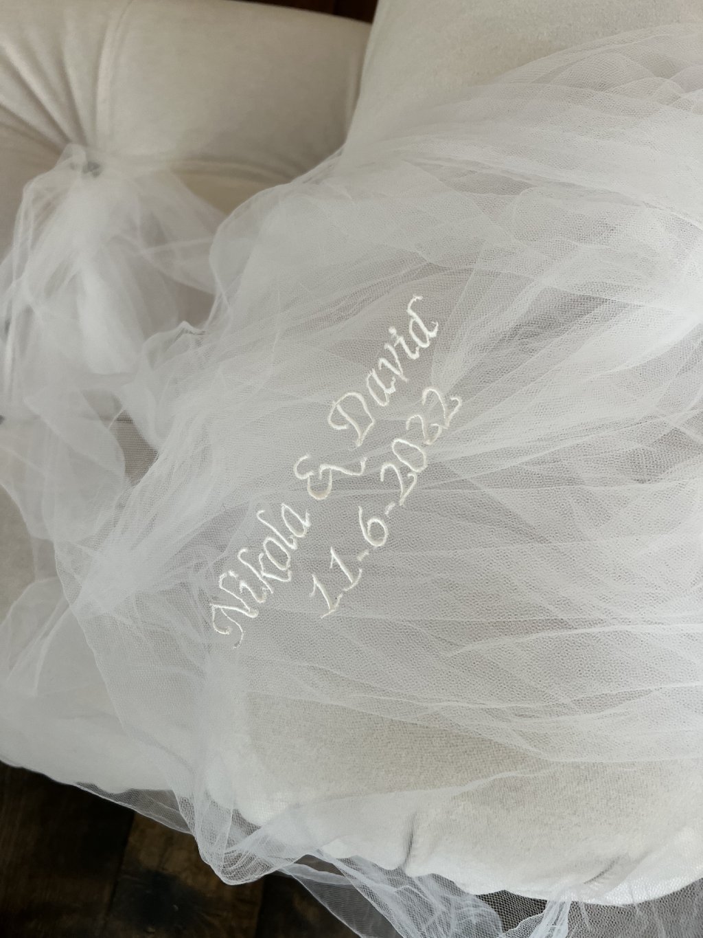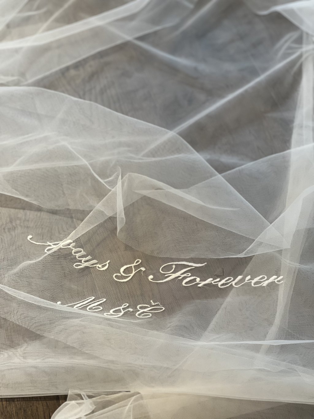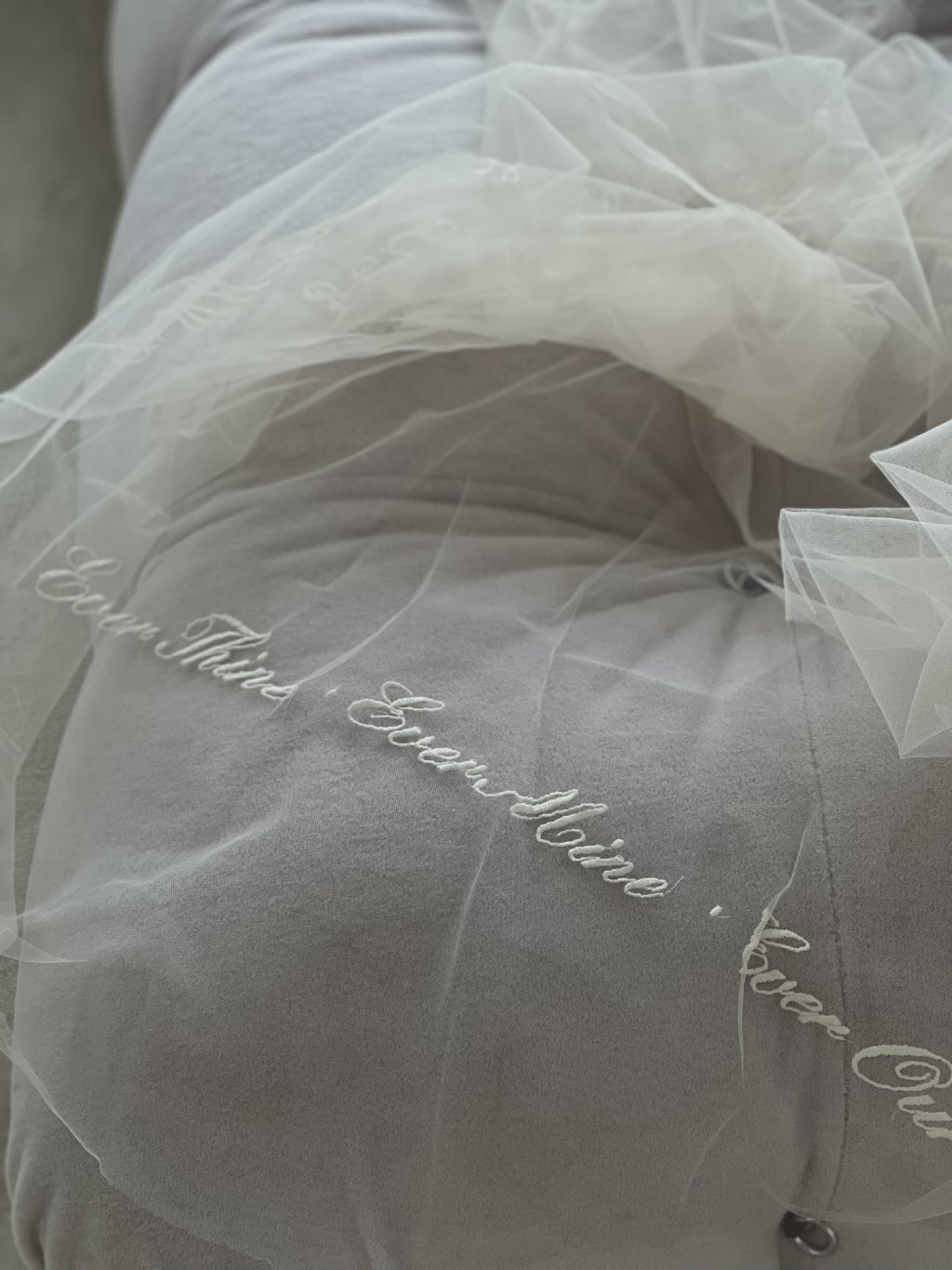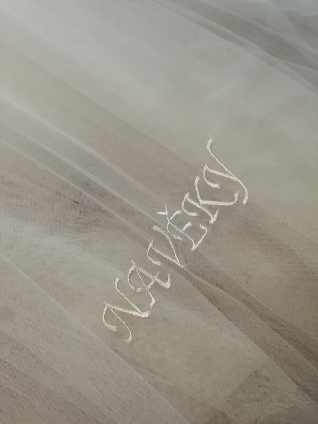 Hledáte něco originálního pro váš velký den? Náš vyšívaný maxi závoj bude dominantou vašeho dne D. Vyberte si iniciály, jméno, datum svatby nebo jiný výjimečný okamžik, který vám vyšijeme na závoj.