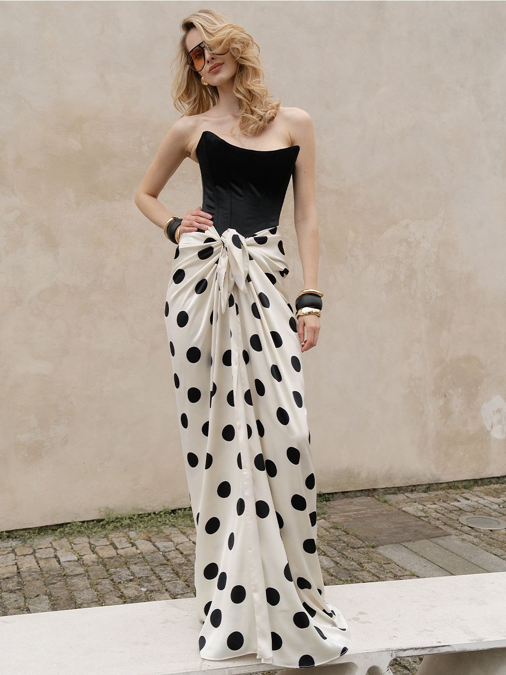 THE BLACK CORSET AND IVORY DOTS SKIRT.