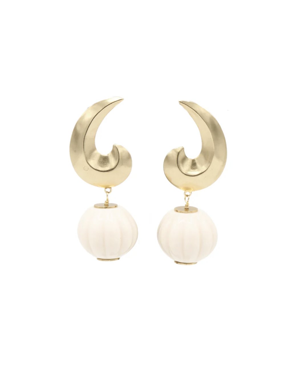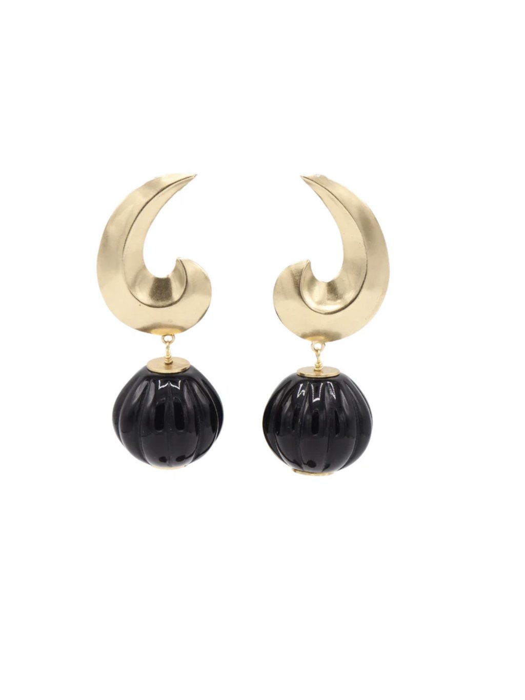 Earrings made with a serpentine piece, made of brass with protection, and a resin pumpkin pendant.