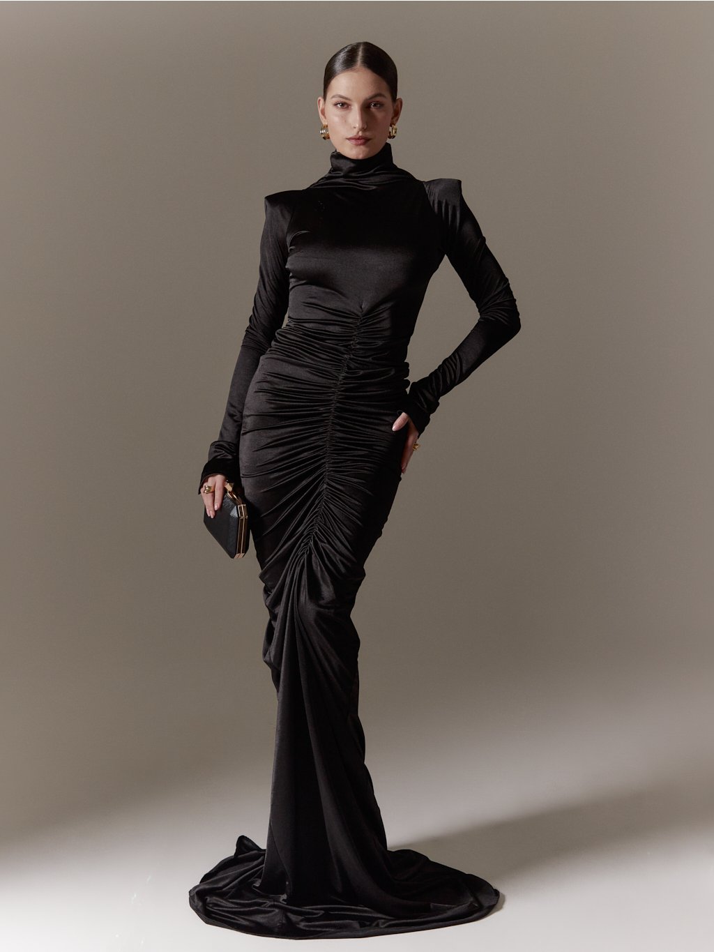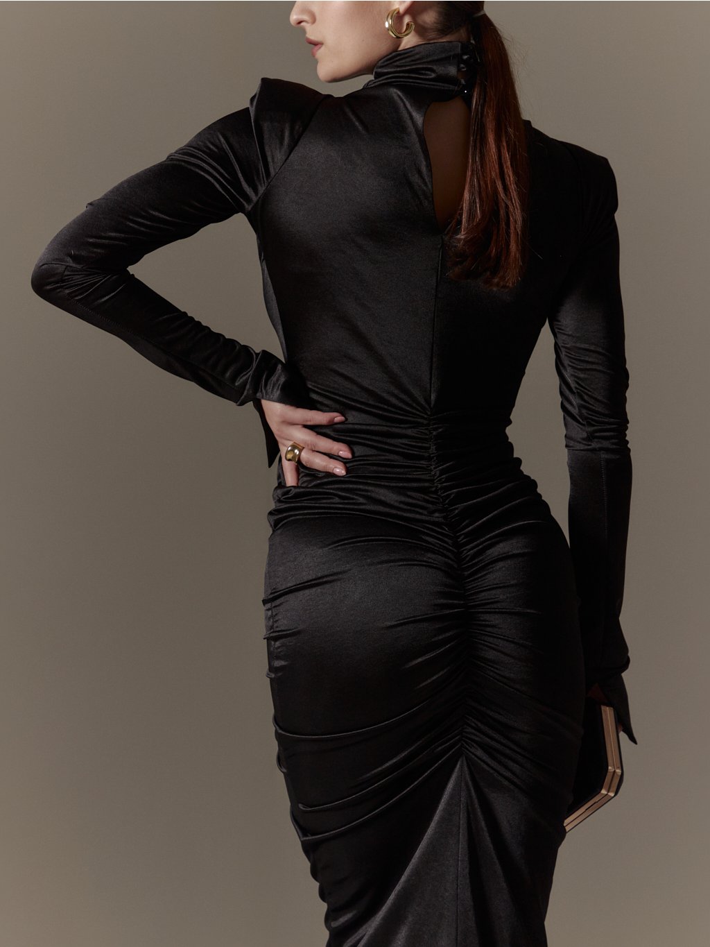 Minimalistické šaty Angie s kontrastním řasením a vycpávkami.