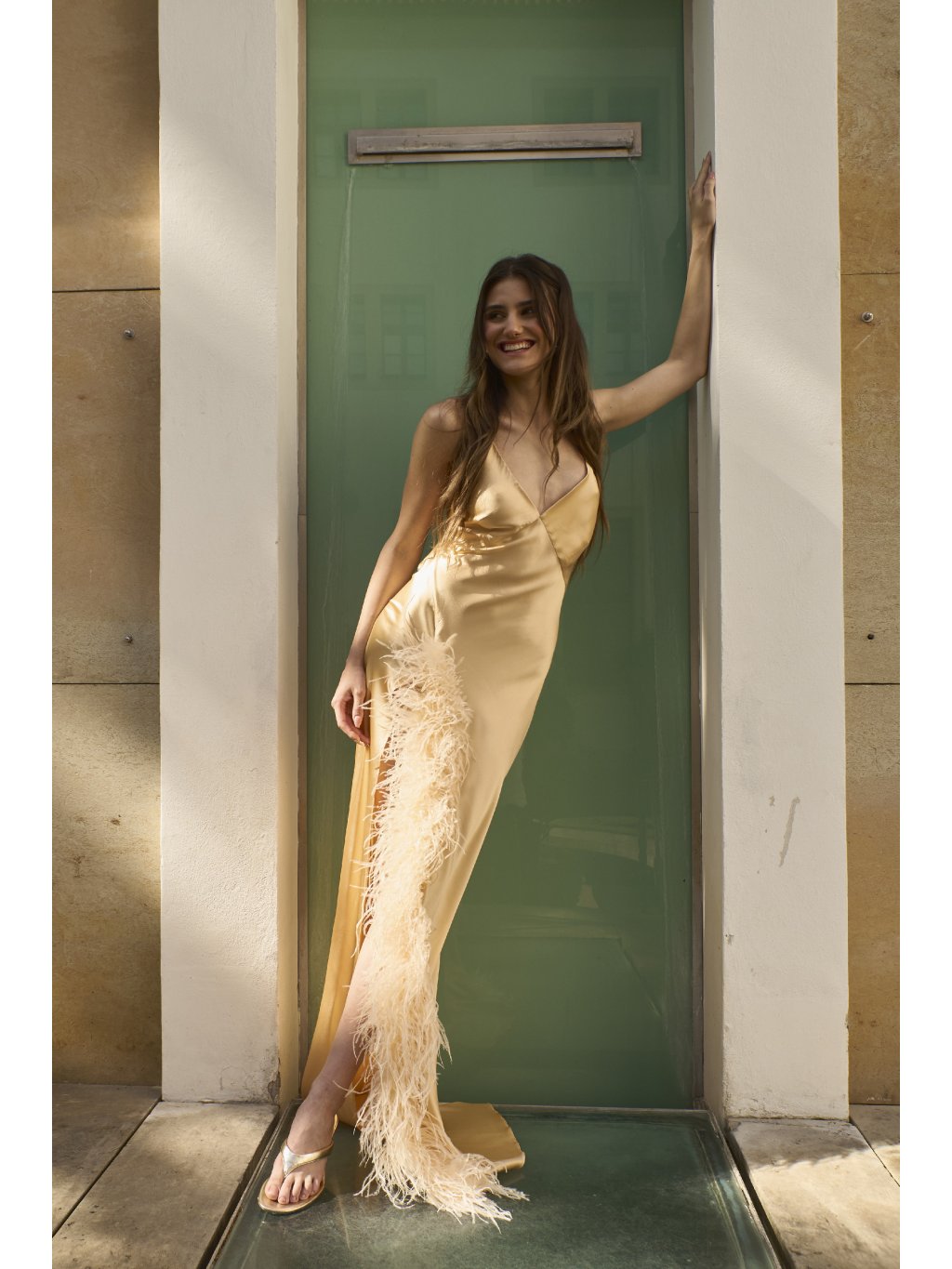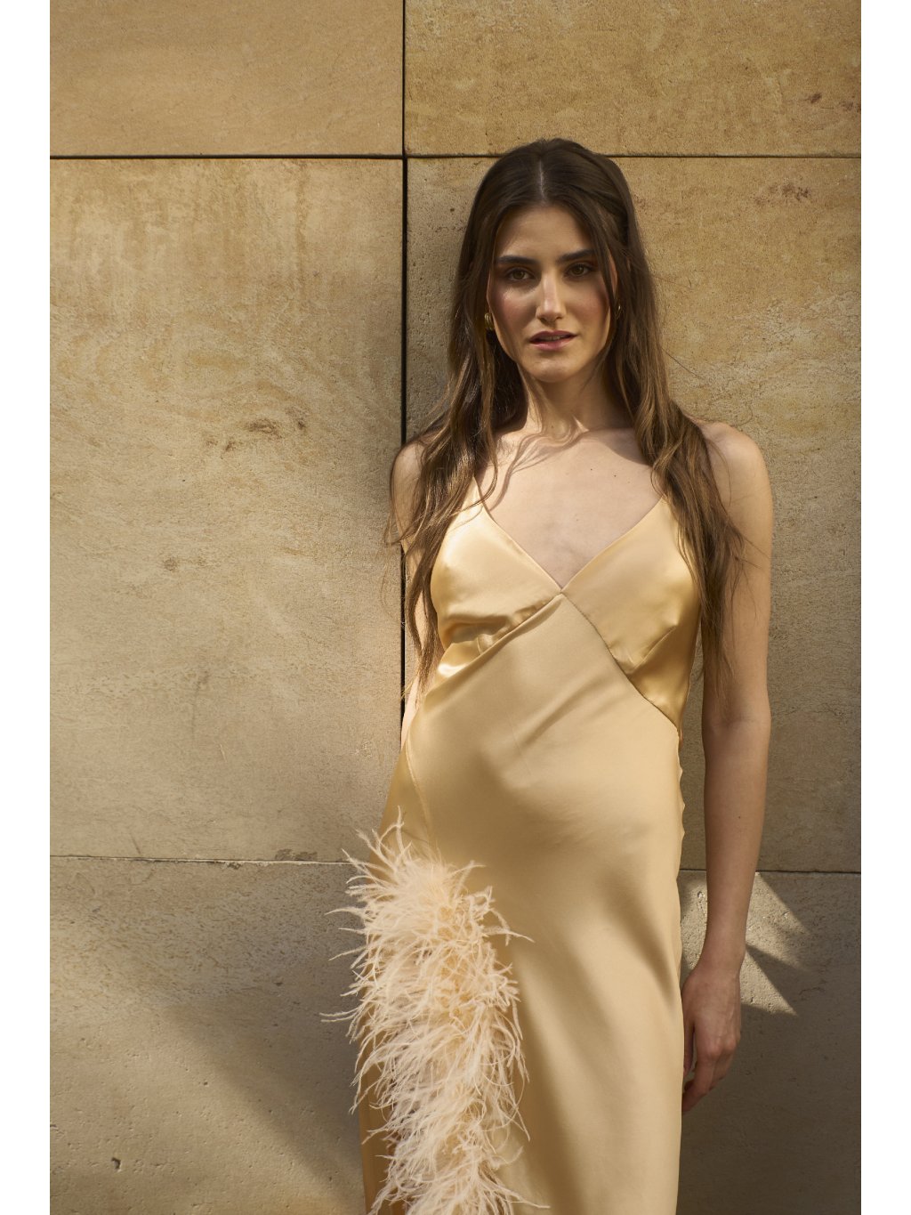 Tailoring of this dress, such as a slight change of cut, is possible for a 20% surcharge.