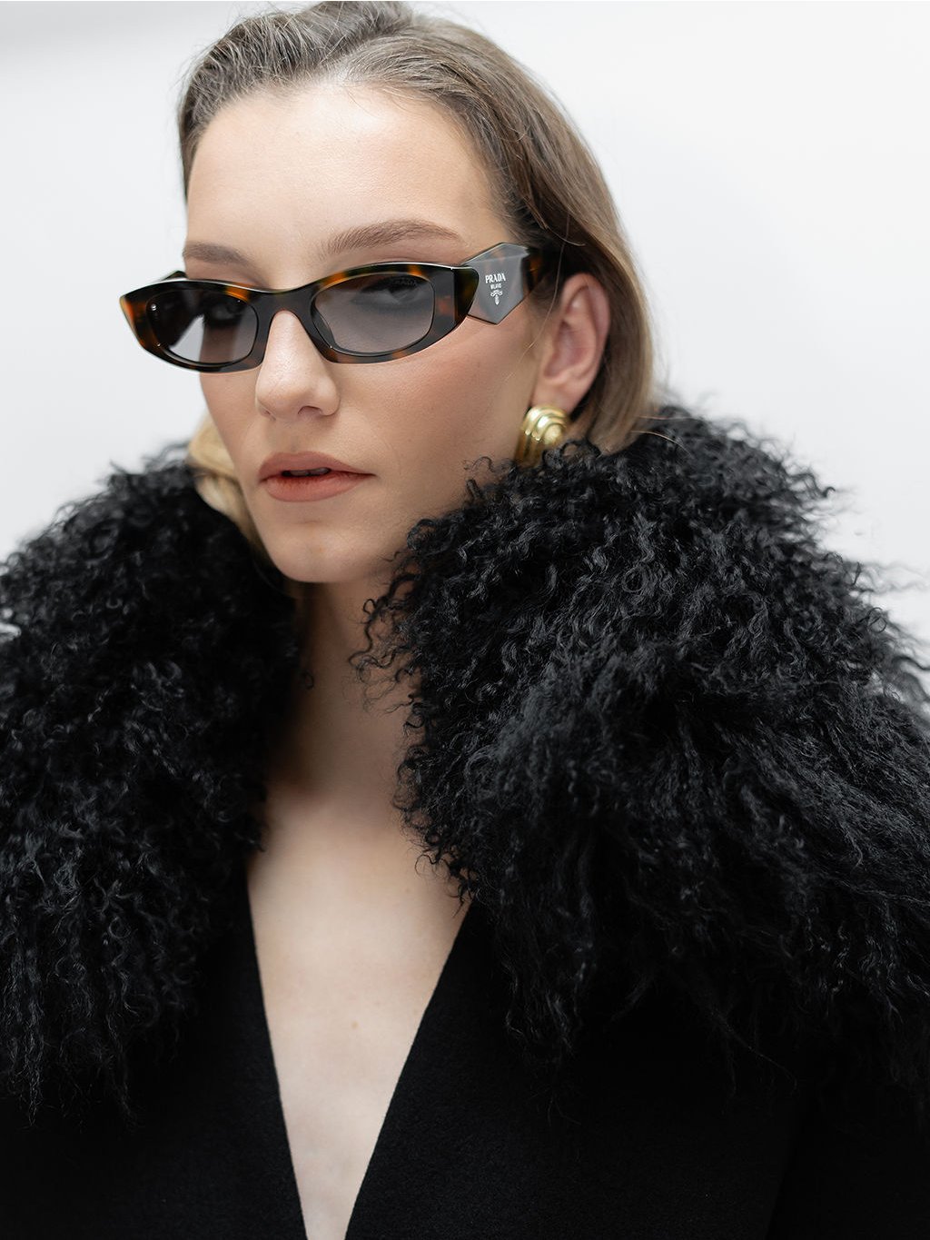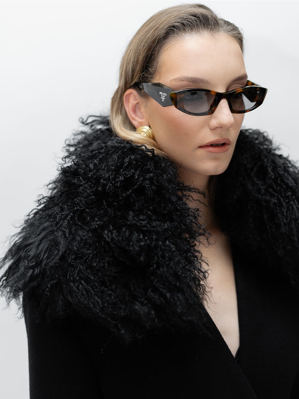 THE BLACK MONGOLIAN COLLAR COAT - CASHMERE
