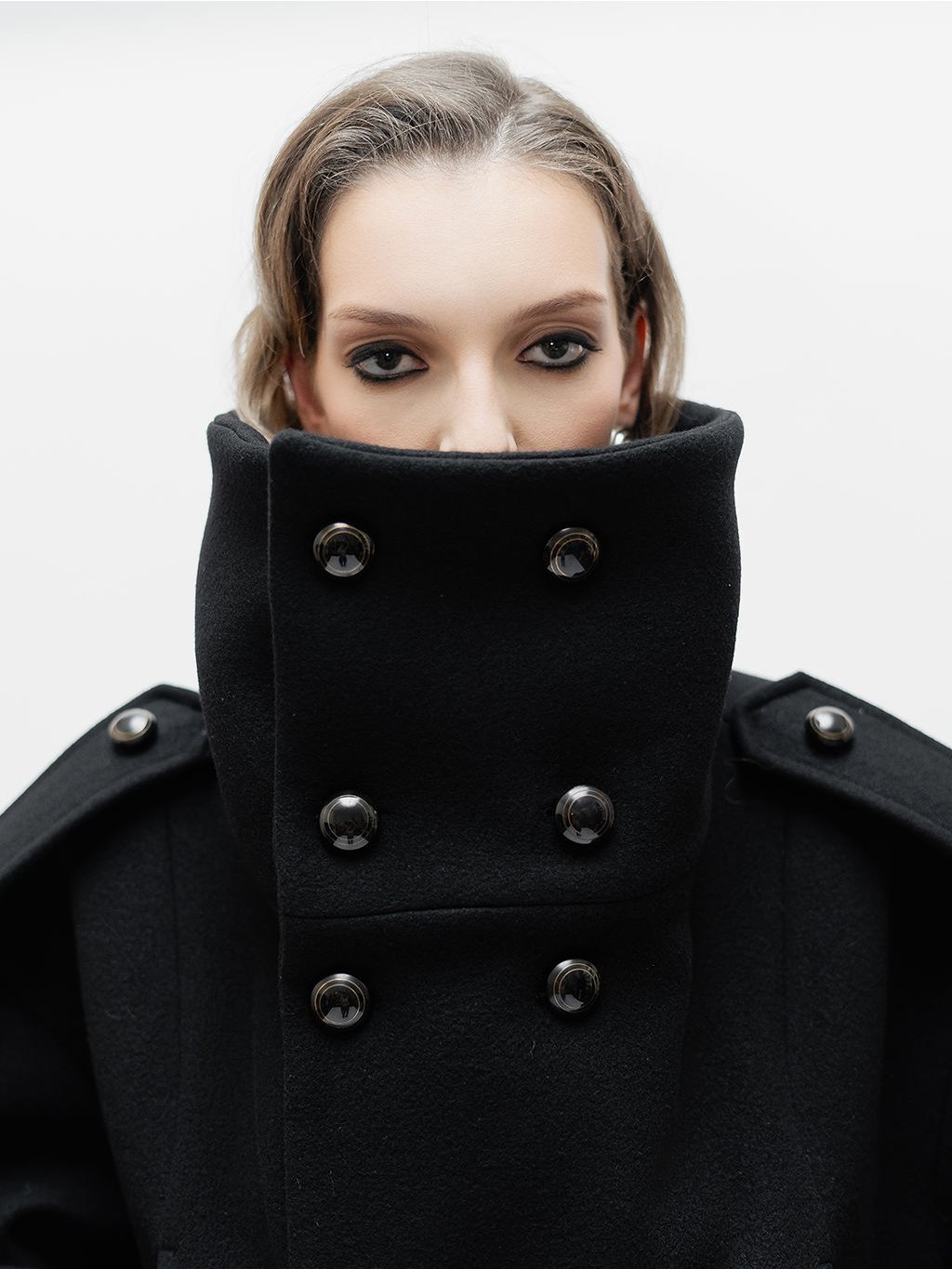 THE NOIR STRUCTURED COAT – 100% CASHMERE.
