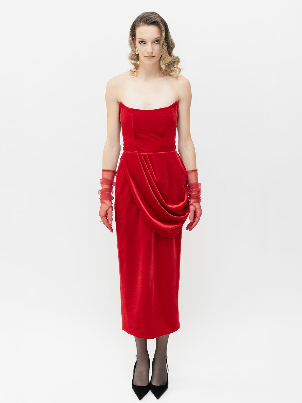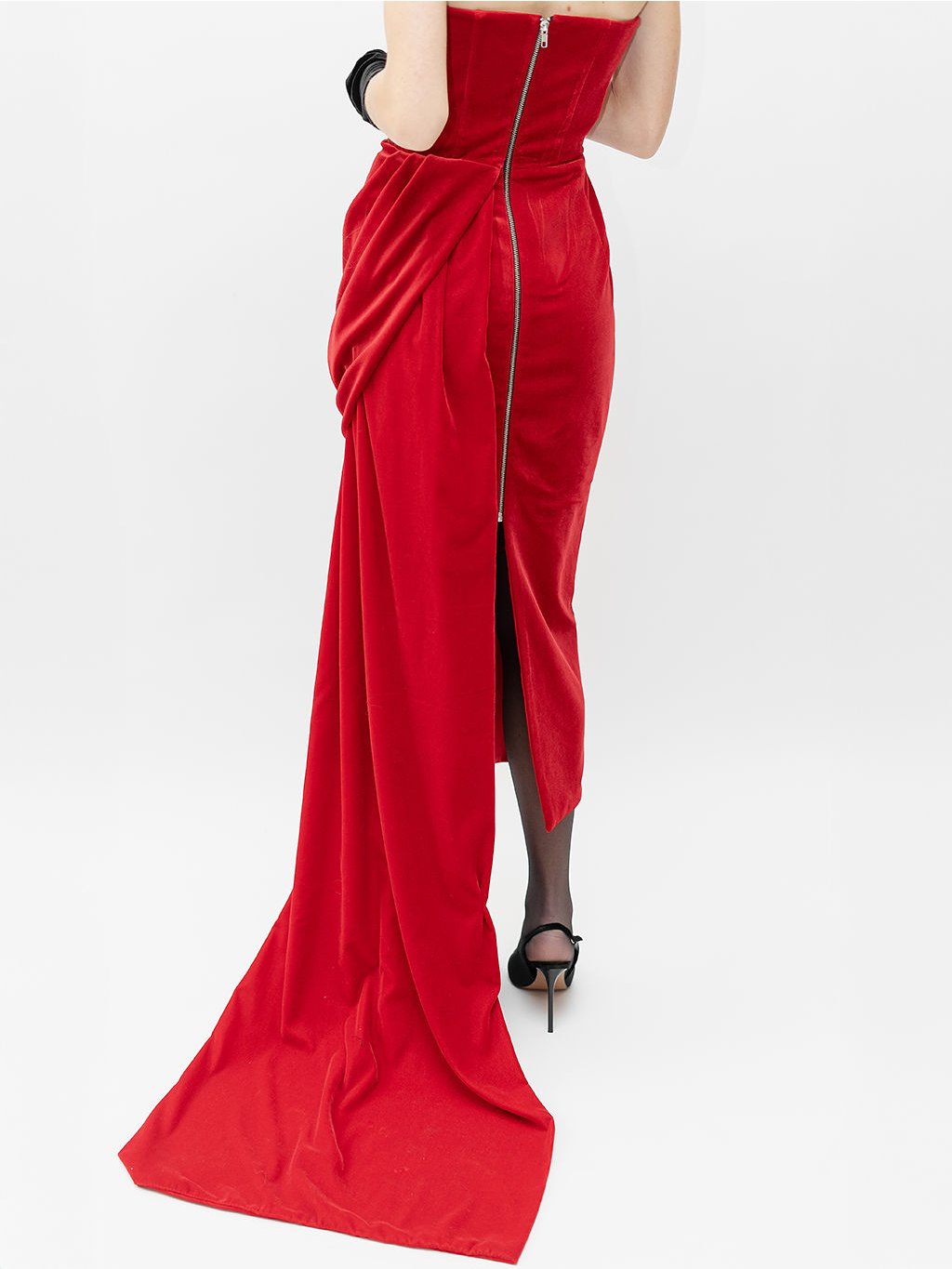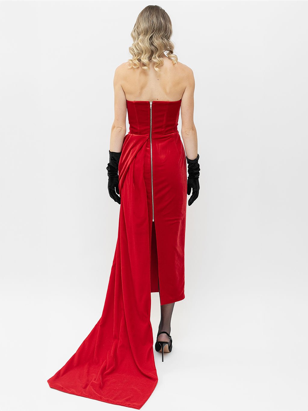 THE RED VELVET GOWN WITH DETACHABLE TRAIN
