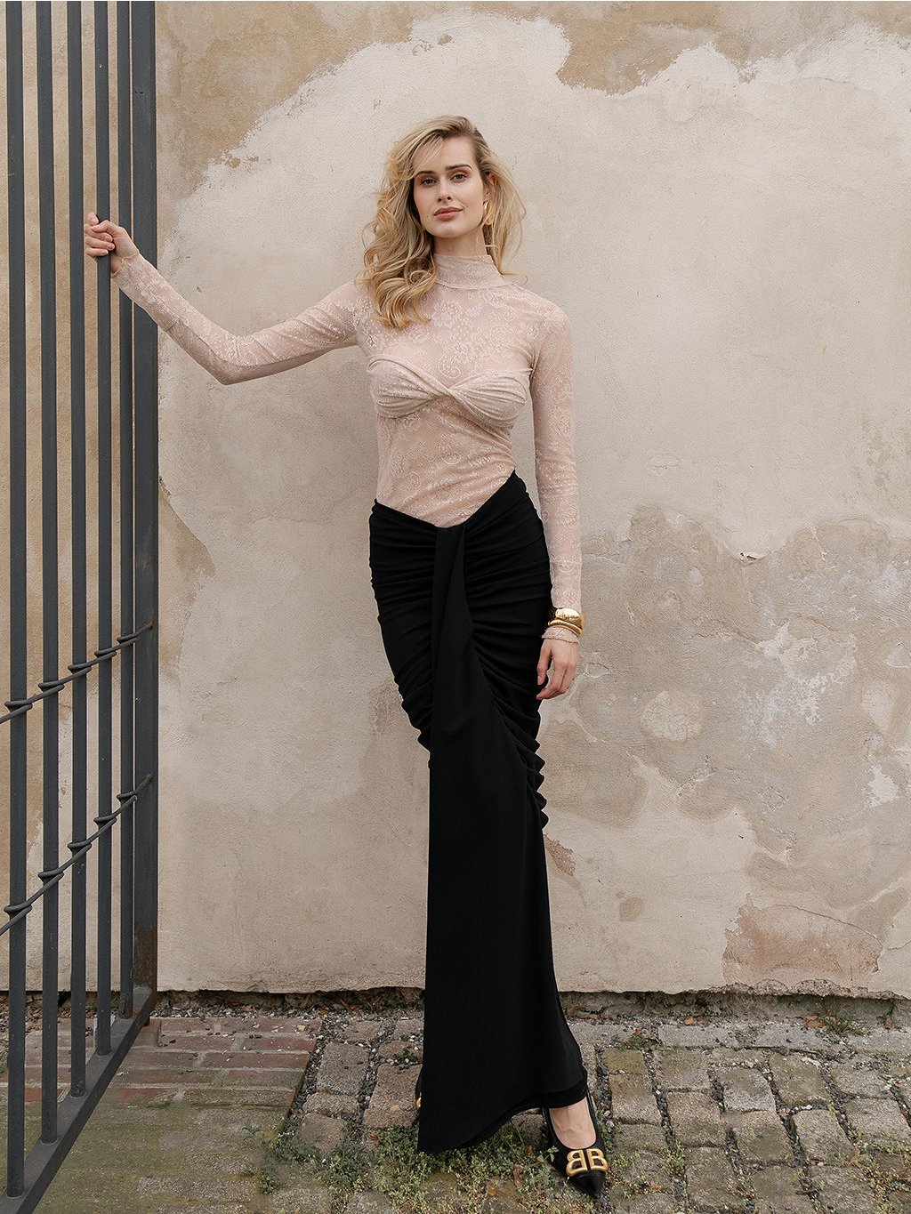Tailoring of this dress, such as a slight change of cut, is possible for a 20% surcharge.