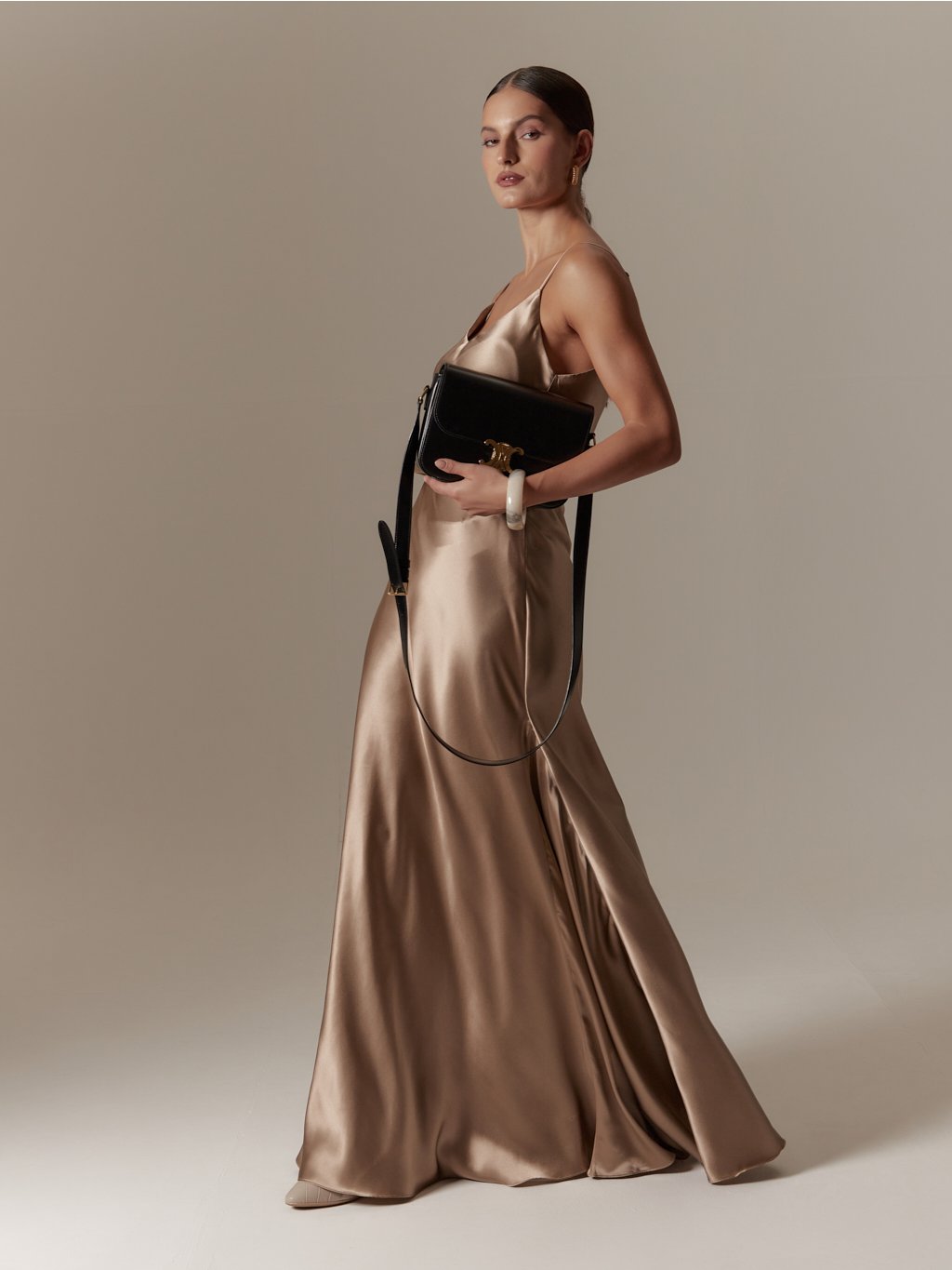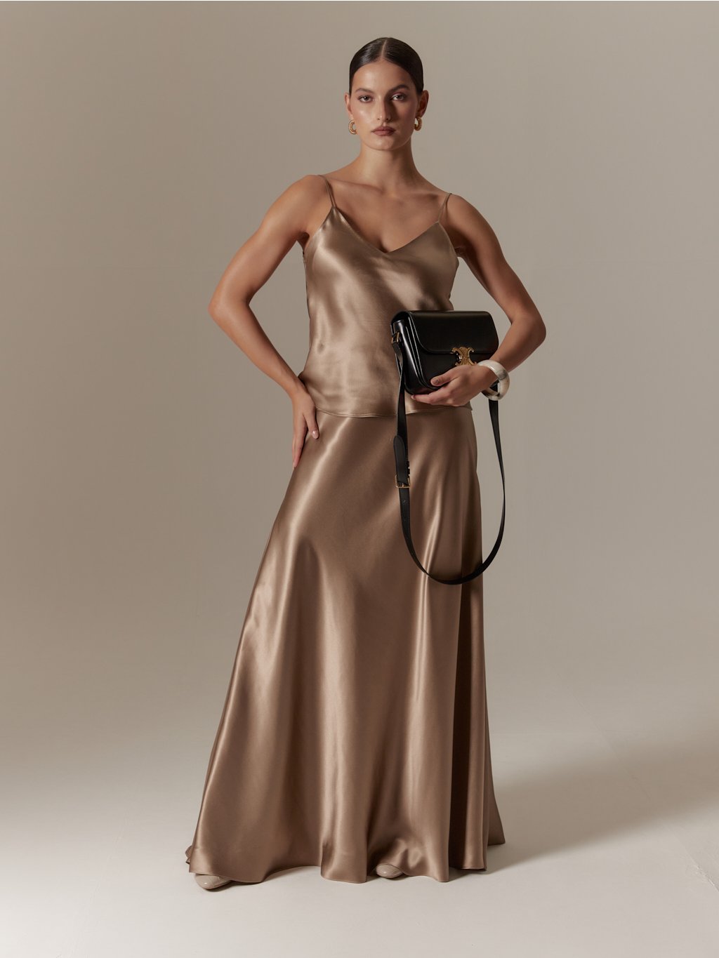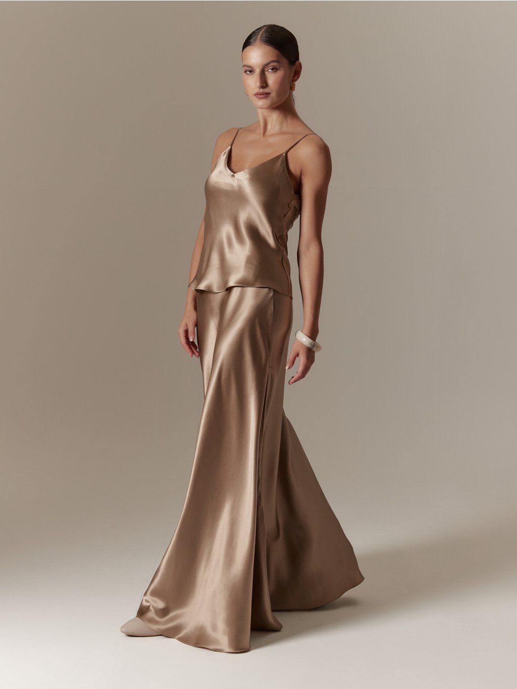 - Vyrobeno ze šikmo střiženého hedvábného saténu, jehož unikátní vlastností je, že respektuje ženskou siluetu, neobepíná a s tělem krásné splývá, díky tomu nabízí velkou variabilitu pro různé postavy, s rozdílnými mírami, aniž by šaty působily malé či velké, zvolte proto svou běžnou velikost.