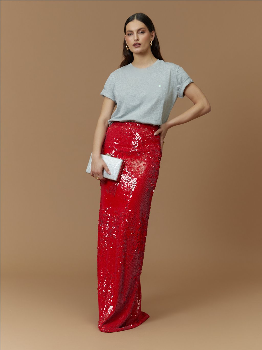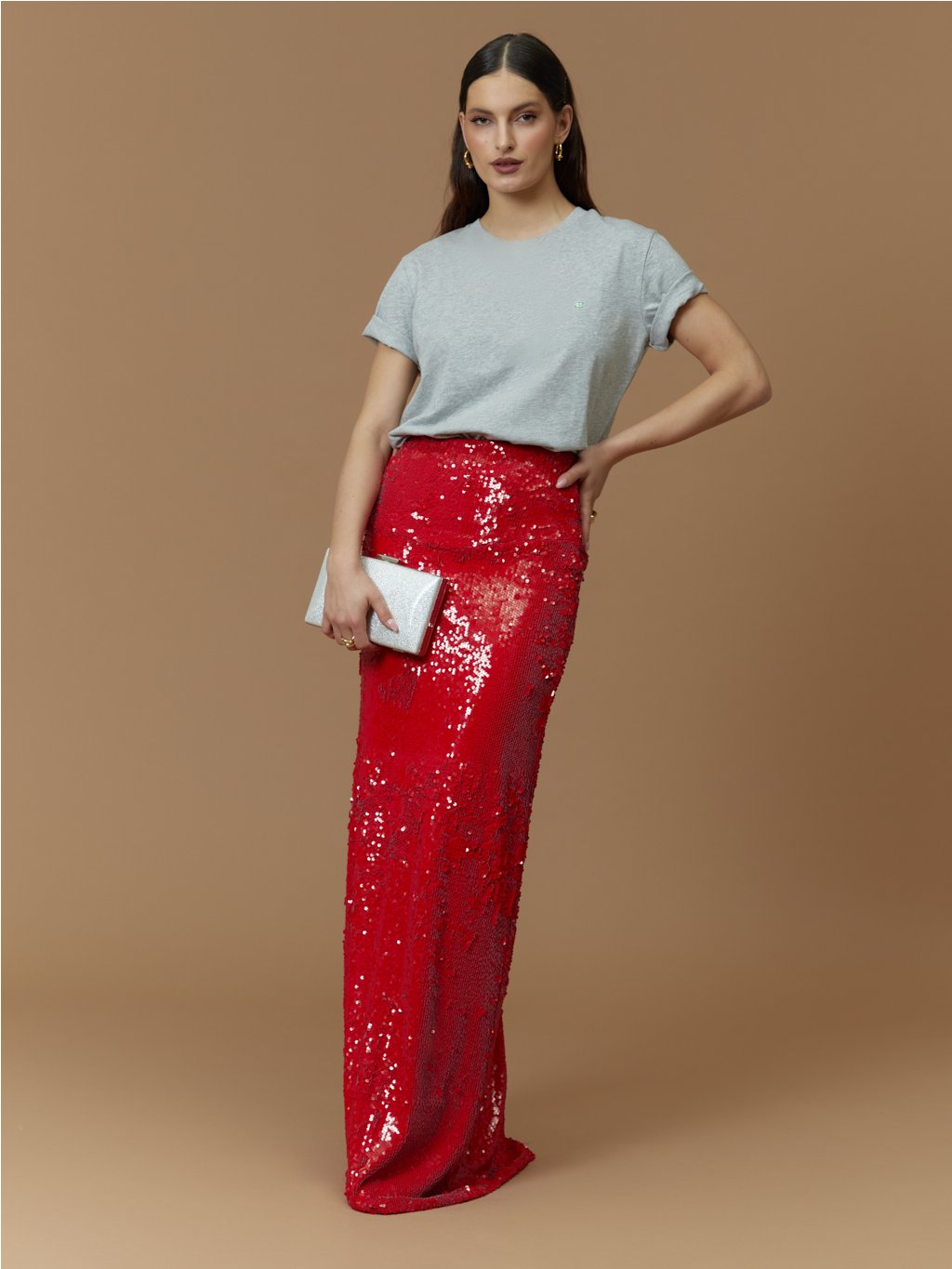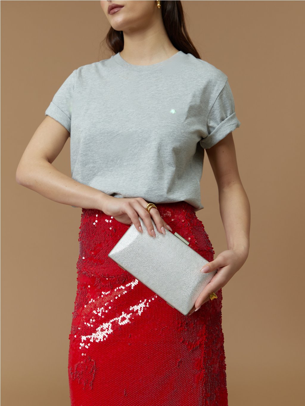Modelka měří 169 cm. Běžně nosí velikost 36. Na sobě má velikost S.